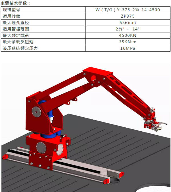 一鍵式鉆臺面機械手用于鉆臺面排放和取出立根,管柱上下鉆臺面扶管操作。一鍵式鉆臺面機械手代替鉆臺面人工扶管作業(yè),可大大降低勞動強度,提高作業(yè)效率及安全性。
