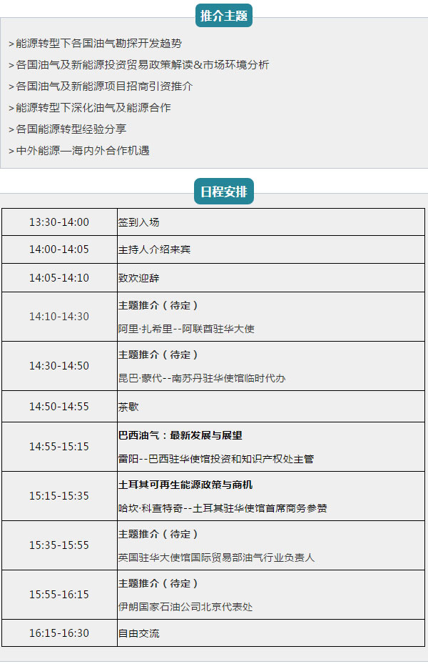 6月8-10日,一年一度的世界石油天然氣大會(huì)—第二十一屆中國國際石油石化技術(shù)裝備展覽會(huì)(cippe2021)將在北京·中國國際展覽中心(新館)舉行。展會(huì)同期將舉辦cippe2021駐華使館(油氣)推介會(huì),邀請(qǐng)阿聯(lián)酋駐華大使、盧旺達(dá)共和國駐華大使、南蘇丹駐華大使館臨時(shí)代辦、土耳其駐華大使館首席商務(wù)參贊、巴西駐華大使館投資和知識(shí)產(chǎn)權(quán)處主管、英國駐華大使館國際貿(mào)易部油氣行業(yè)負(fù)責(zé)人、伊朗國家石油公司北京代表處等嘉賓出席本次推介會(huì)。共同研究全球油氣及能源行業(yè)發(fā)展動(dòng)向,探討深化油氣及能源國際合作,分享最新市場機(jī)遇,為中外油氣及能源企業(yè)搭建溝通交流平臺(tái),推動(dòng)互利合作,助力解決能源發(fā)展面臨的問題,實(shí)現(xiàn)共同發(fā)展、共同繁榮。