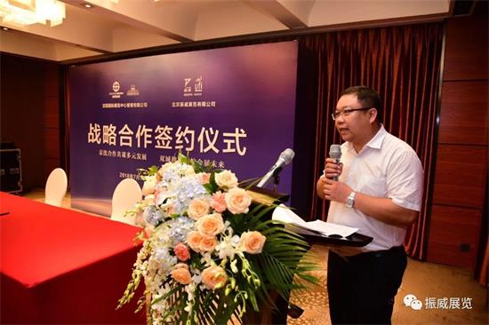 2018年7月10日下午,沈陽國際展覽中心與北京振威展覽有限公司在北京中奧馬哥孛羅酒店舉行戰(zhàn)略合作簽約儀式。沈陽國展總裁劉雨聲、振威展覽股份董事長張學山出席簽約儀式并講話,振威展覽股份常務副總裁鄧小輝主持儀式。