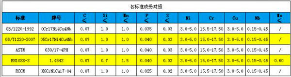現(xiàn)針對17-4PH的標準牌號、成份及熱處理等級進行一個整理,以供大家參考。