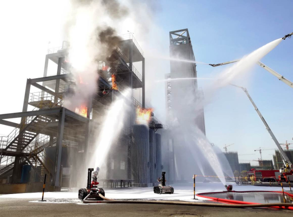 消防滅火偵察機(jī)器人由機(jī)器人本體、中倍泡沫炮及手持遙控終端組成。主要用于石油化工燃料,油庫、加油站、機(jī)場(chǎng)、鐵路等流淌型火災(zāi)。