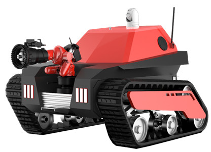 中型油動(dòng)力消防滅火機(jī)器人采用履帶式懸掛減震機(jī)構(gòu),由機(jī)器人本體、消防水炮、紅外云臺及控制終端等模塊構(gòu)成。同小型消防滅火機(jī) 器人相比,中型油動(dòng)力消防滅火機(jī)器人的行駛性能、拖拽水帶、滅火能力等更加強(qiáng)大,負(fù)載更大,續(xù)航時(shí)間更長。中型油動(dòng)力消防滅火 機(jī)器人適用于石油化工、地下管廊、隧道、大跨度/大空間場所等人員不易接近的危 險(xiǎn)火災(zāi)現(xiàn)場進(jìn)行滅火、冷卻、化學(xué)洗消等作業(yè)。