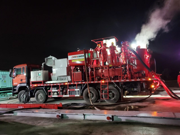 石化機(jī)械成功研發(fā)世界首臺(tái)超大功率電動(dòng)固井車(圖為應(yīng)用現(xiàn)場(chǎng))