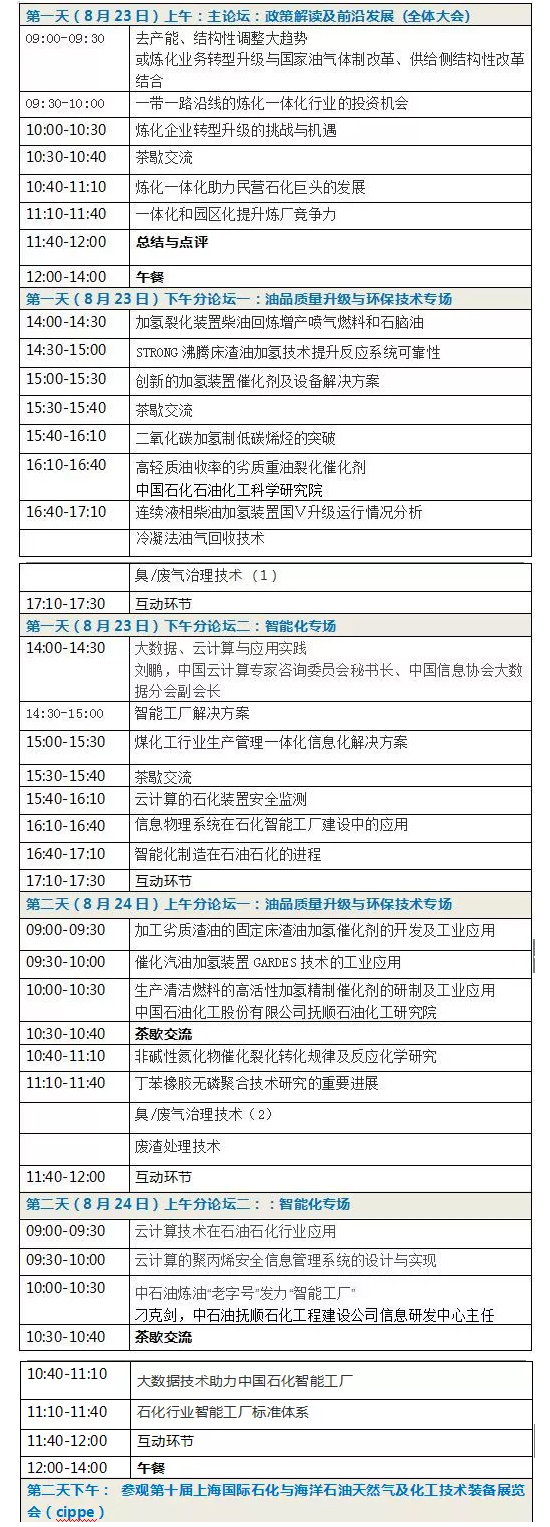 本屆國際石油石化技術(shù)高峰論壇是上海cippe同期主論壇。論壇致力于為煉油煉化行業(yè)提供一個專業(yè)化、高端化、創(chuàng)新化的技術(shù)交流平臺。共同推進(jìn)煉油煉化領(lǐng)域的前沿研究與科技創(chuàng)新,促進(jìn)全球能源的合作與發(fā)展,成為引領(lǐng)世界煉油煉化產(chǎn)業(yè)發(fā)展的“風(fēng)向標(biāo)”。