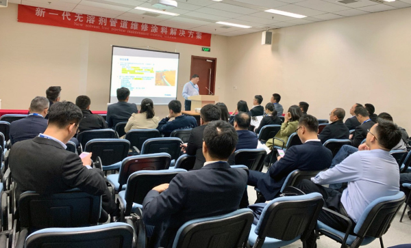 3月27日上午,海虹老人還舉辦了一場別開生面的產(chǎn)品介紹會,為與會客戶介紹了海虹老人新一代無溶劑管道維修涂料解決方案的先進(jìn)技術(shù)、產(chǎn)品、應(yīng)用以及案例。其獨特性能如:優(yōu)異的耐介質(zhì)滲透性能,針對管道應(yīng)用環(huán)境開發(fā);固化速度快,滿足維修管線回填要求; VOC接近于零,環(huán)境友好深受客戶的好評。